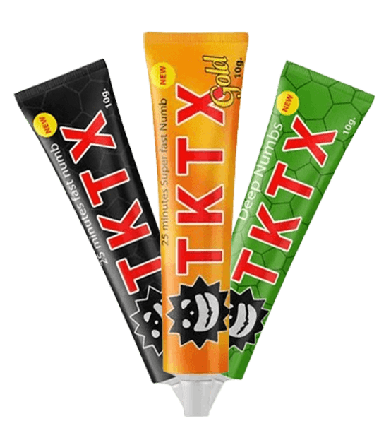 W przypadku krótszych, mniej bolesnych zabiegów – takich jak drobne tatuaże czy zabiegi kosmetyczne – często wybierane są TKTX Żółty lub TKTX Niebieski.